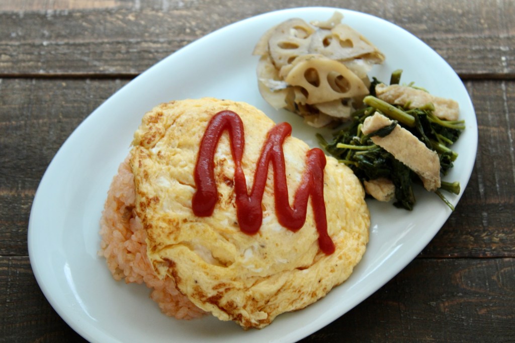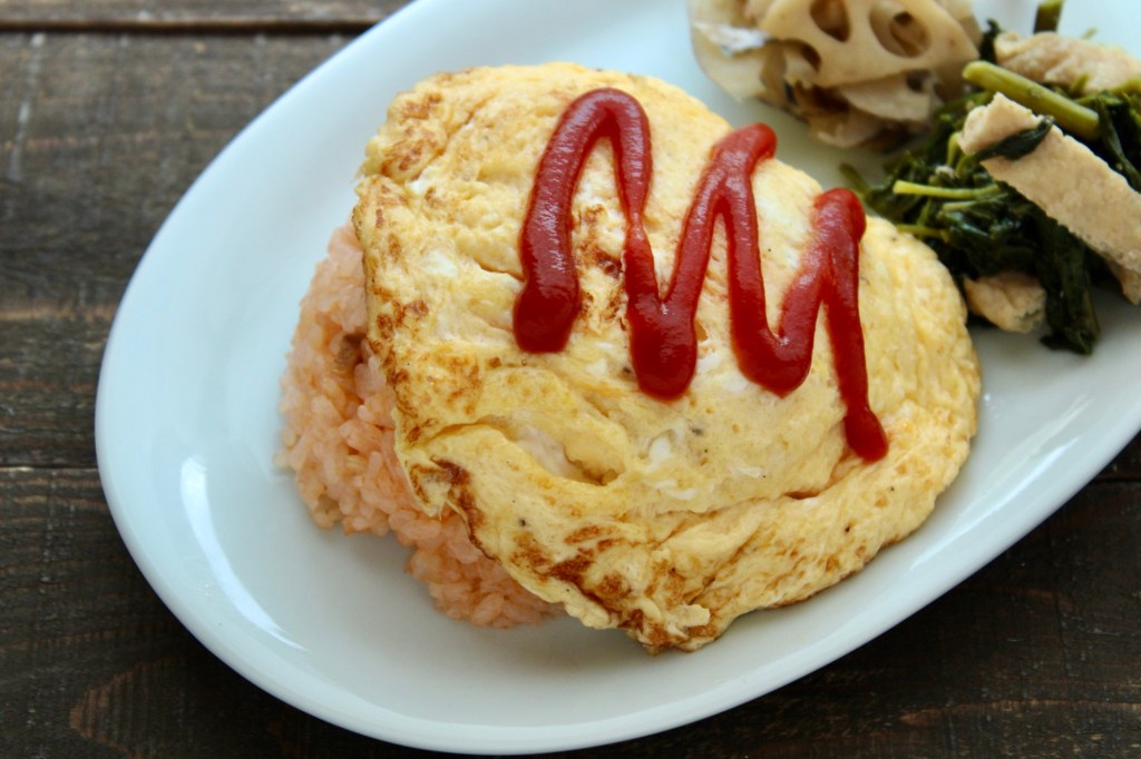オムレツをのせて、お好みでトマトケチャップをかける。