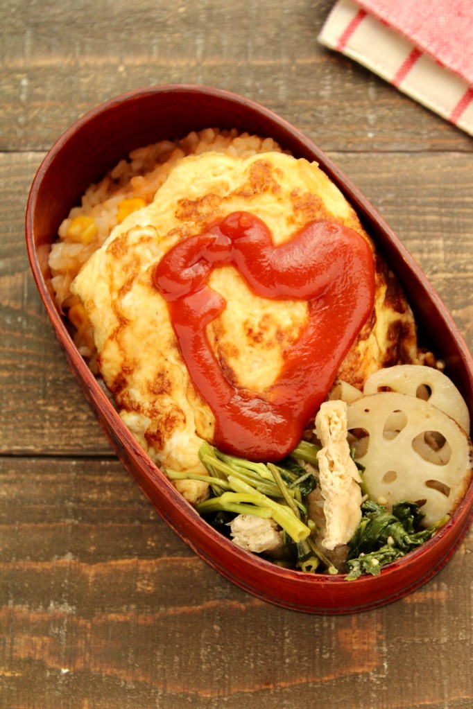 オムライスをお弁当にせずに、作ってすぐ食べる場合は、3の工程で裏返さず、半熟に仕上げてくださいね。